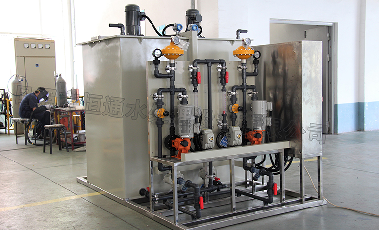 2.設(shè)備組成:一體式成套加藥裝置的主要設(shè)備有:溶液箱(池)、液位計(jì)、加藥泵、脈動(dòng)阻尼器、安全閥、控制閥、壓力表、電控箱、底座等,組成撬裝式設(shè)備。